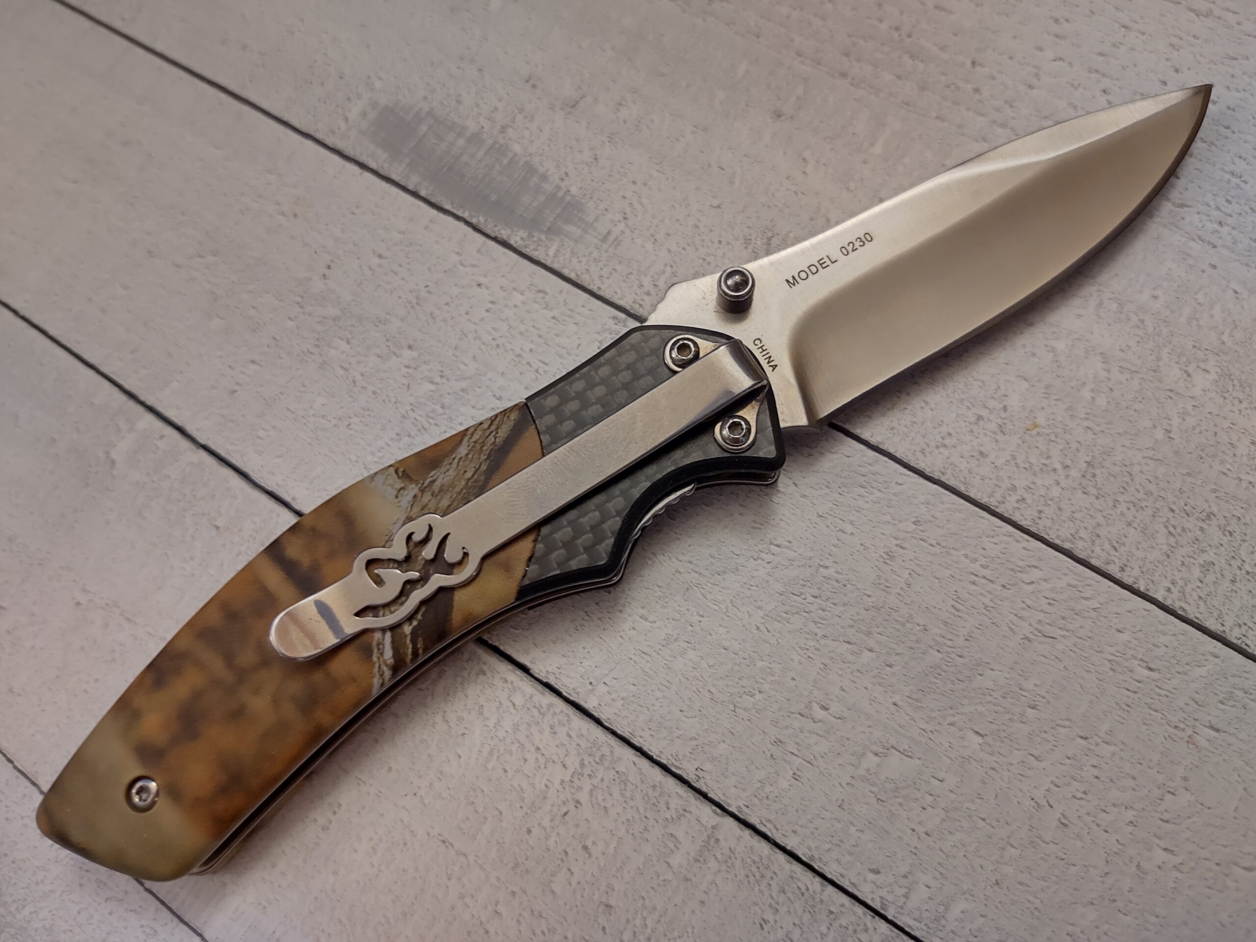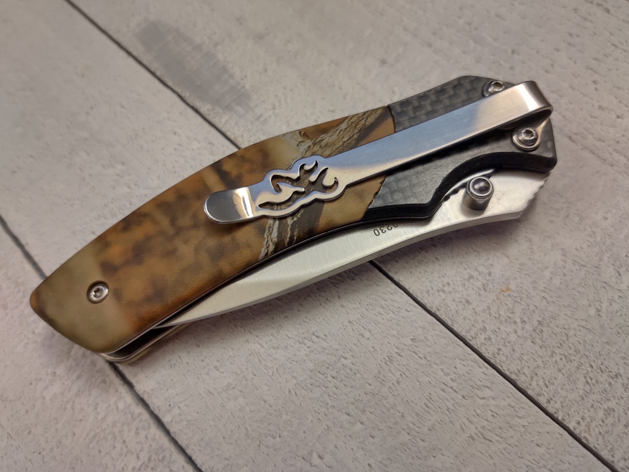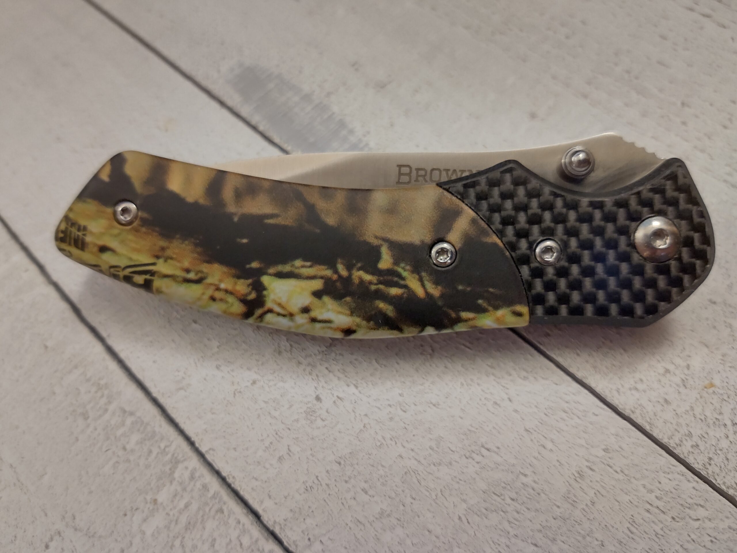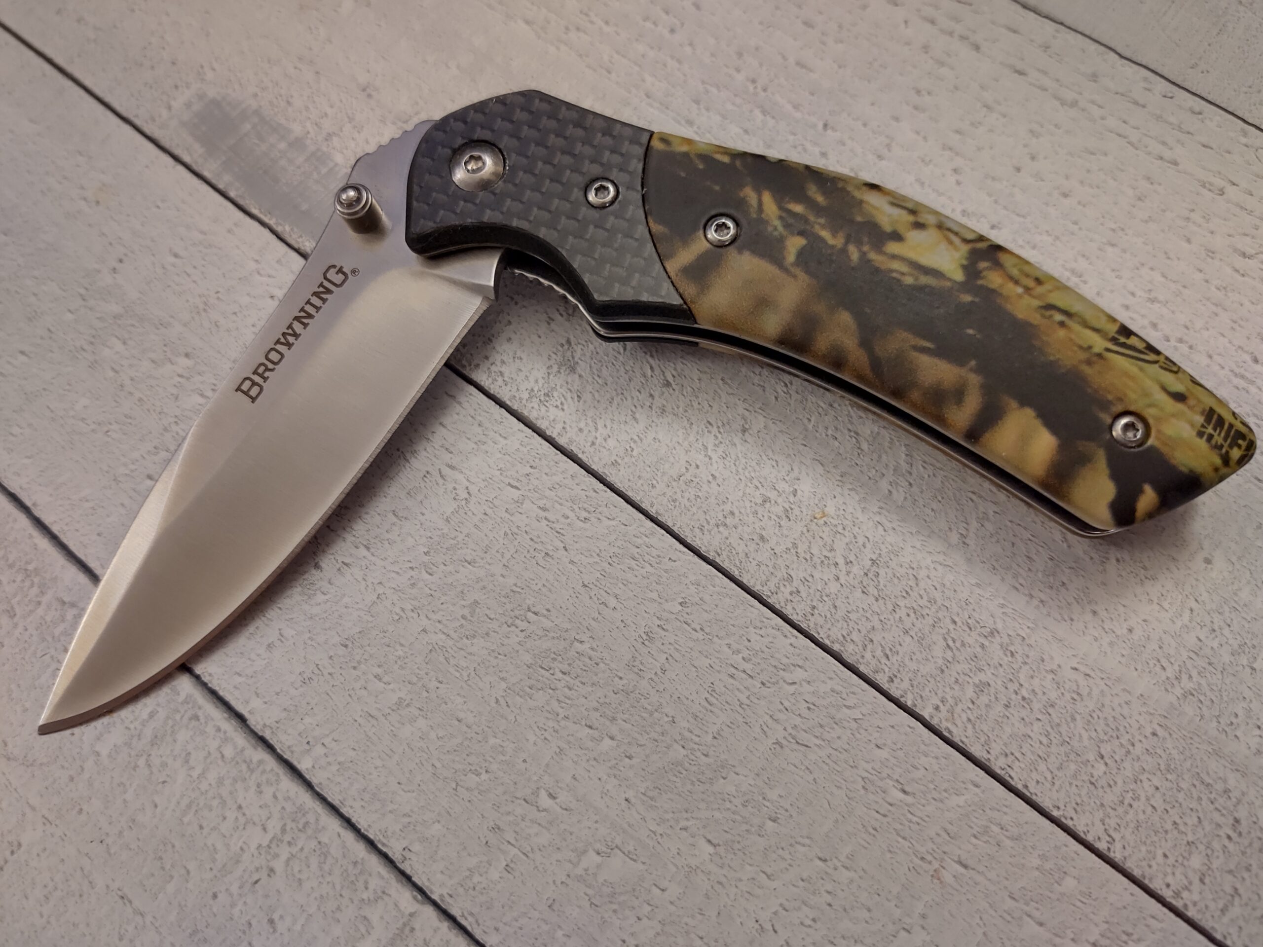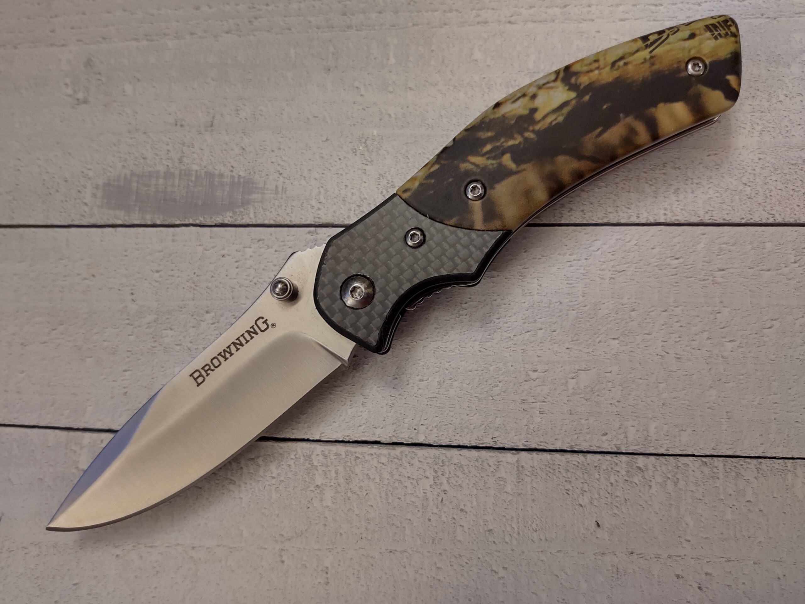 Browning Linerlock Folding Knife 3″ Stainless Steel Blade Camo Carbon Fiber